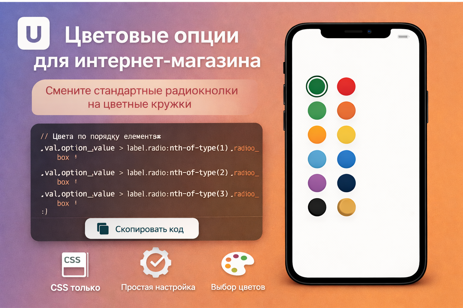 4. Если порядок цветов в опции изменится, измените соответствие в блоке nth-of-type (строки “ГДЕ МЕНЯЮТСЯ ЦВЕТА”).